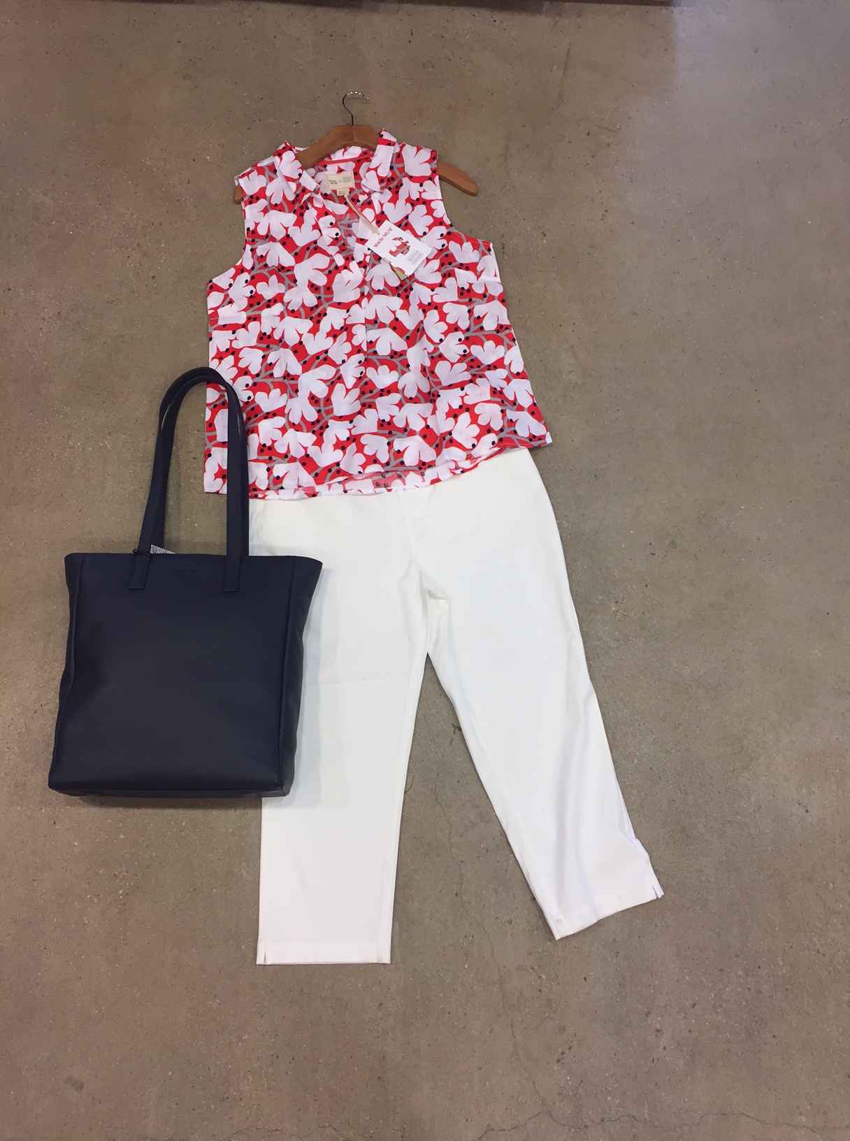 Or you can show off your tan in the Cherry Tree Vest from White Stuff. This sleeveless top is perfect for summer holidays, with its bold colour and loose fit its flattering and easy to wear. Team it with the Yoshi Marlow Shopper in Navy for a french chic look.
