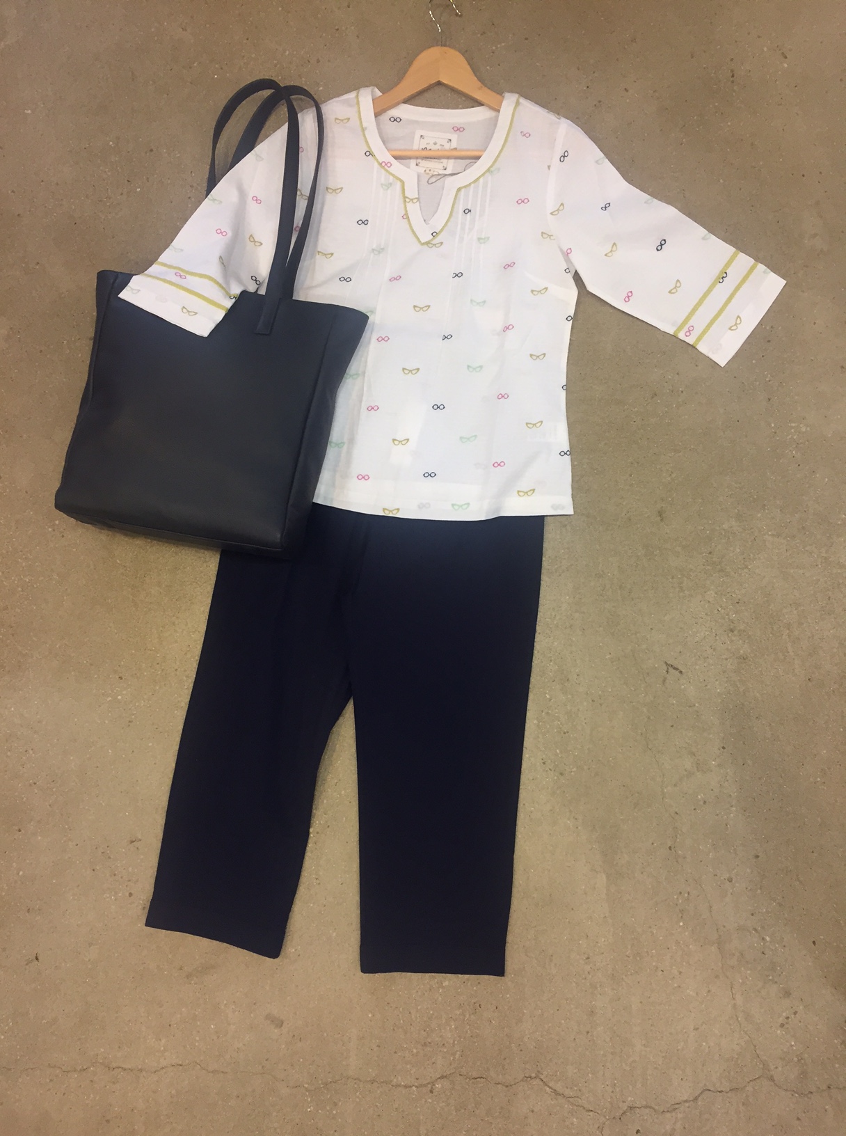 For a more playful look pair it with the Mistral Pretty Vintage Pin Tuck Top. With its cute sunglasses embroidery detailing this top has a quirky edge to it and gives a modern edge to the classic navy crops.